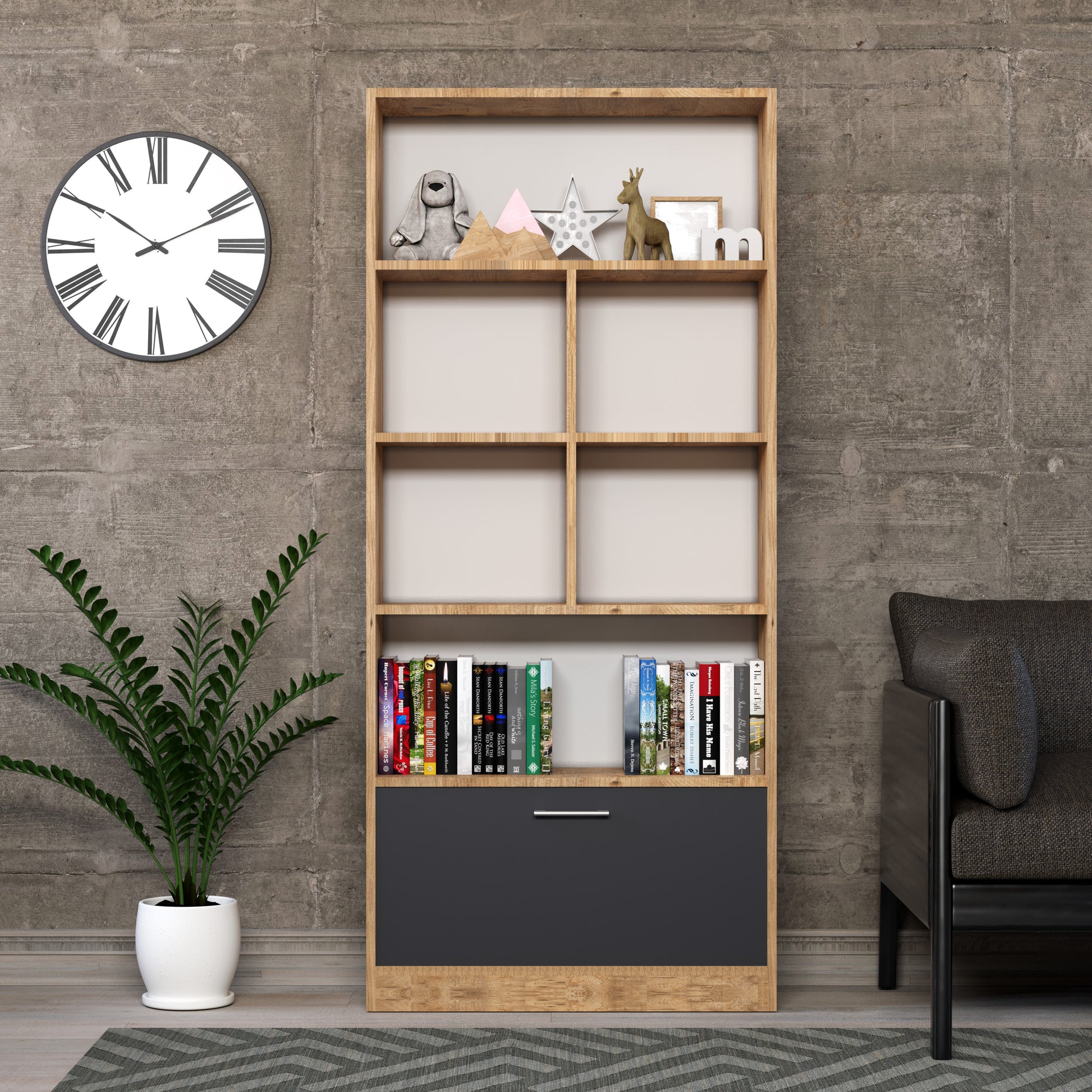 Perlomi 1 Kapaklı 7 Raflı Dekoratif Kitaplık Atlantik Çam/ Karbon Gri PER KTP 001