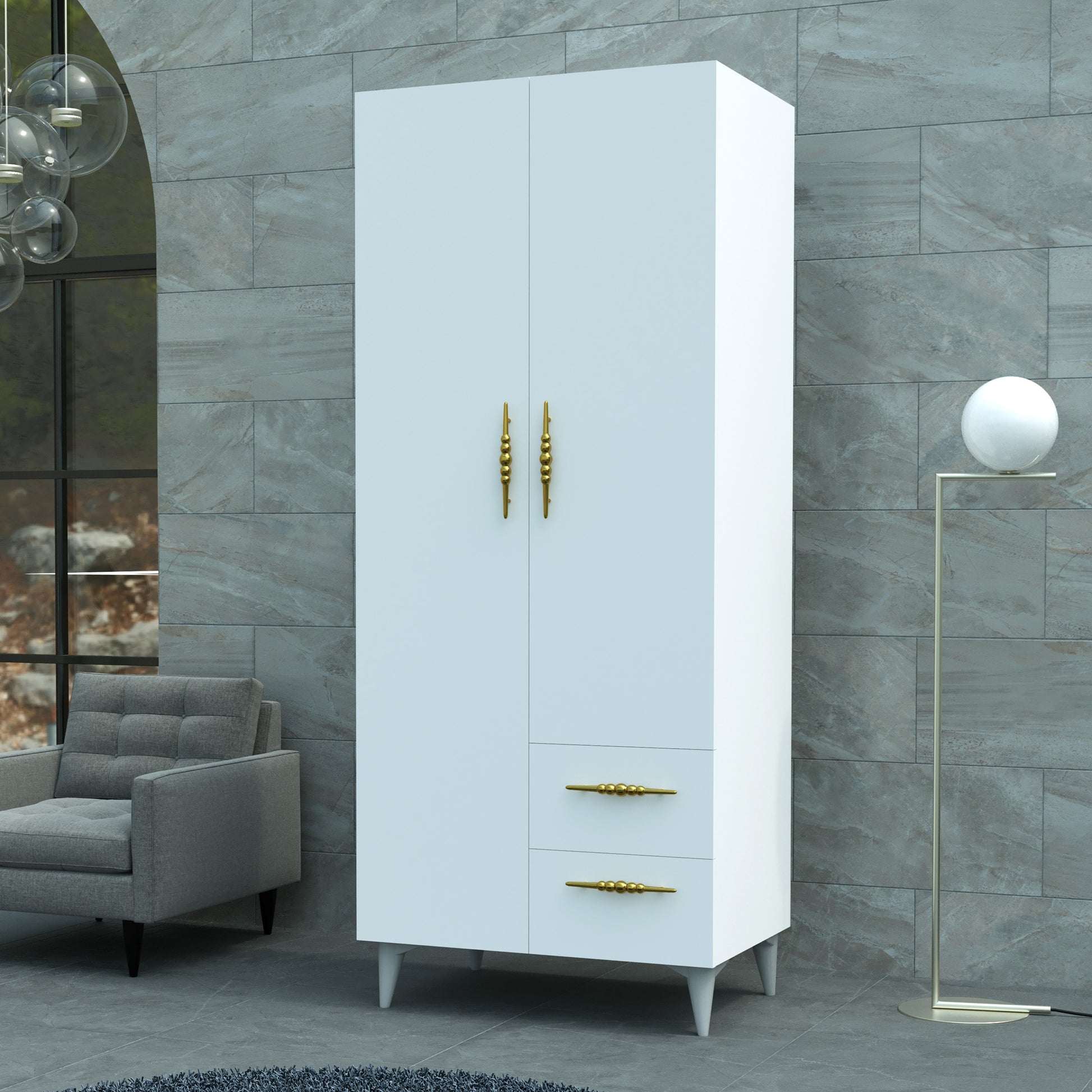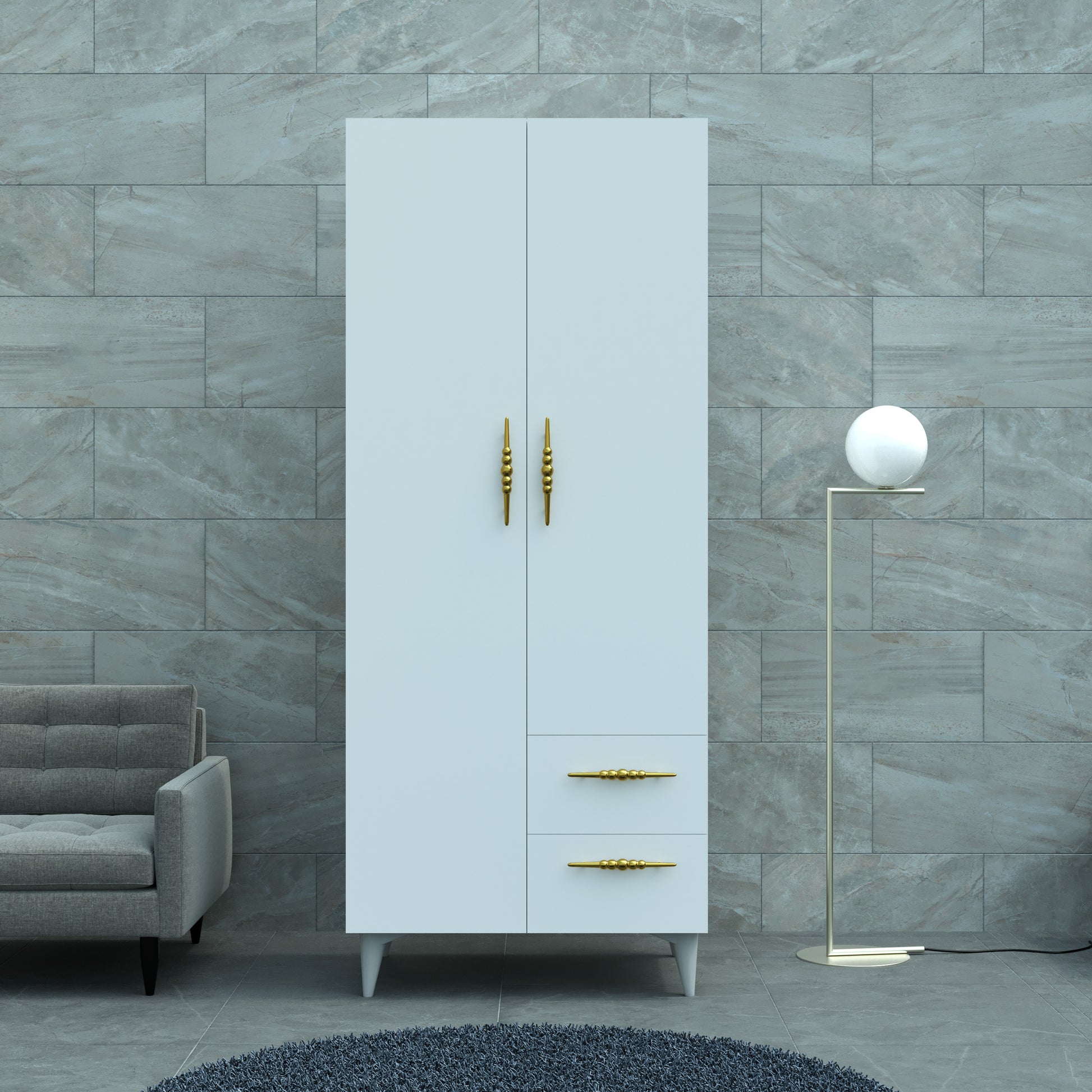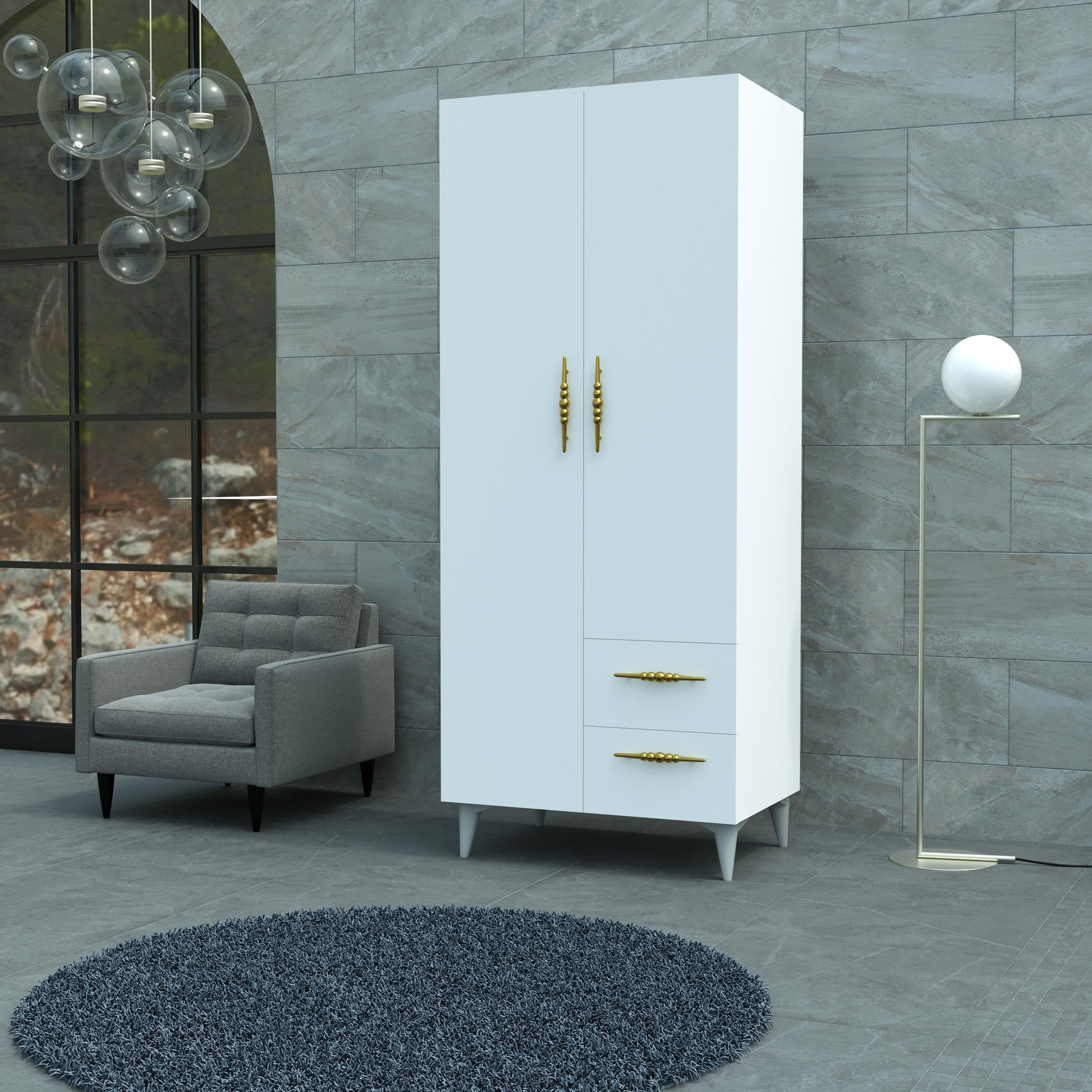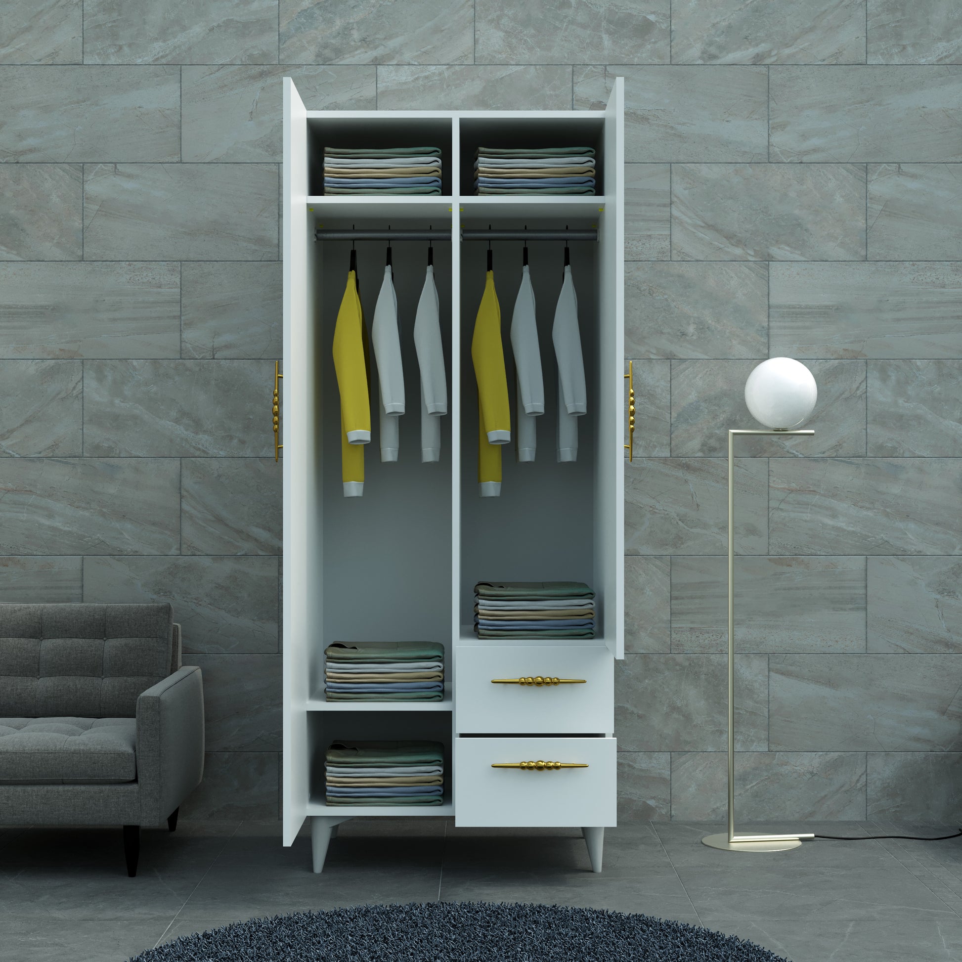 Perlomi 2 Kapaklı 2 Bölmeli 3 Raflı 2 Çekmeceli Elbise Dolabı Beyaz PER DLP 013