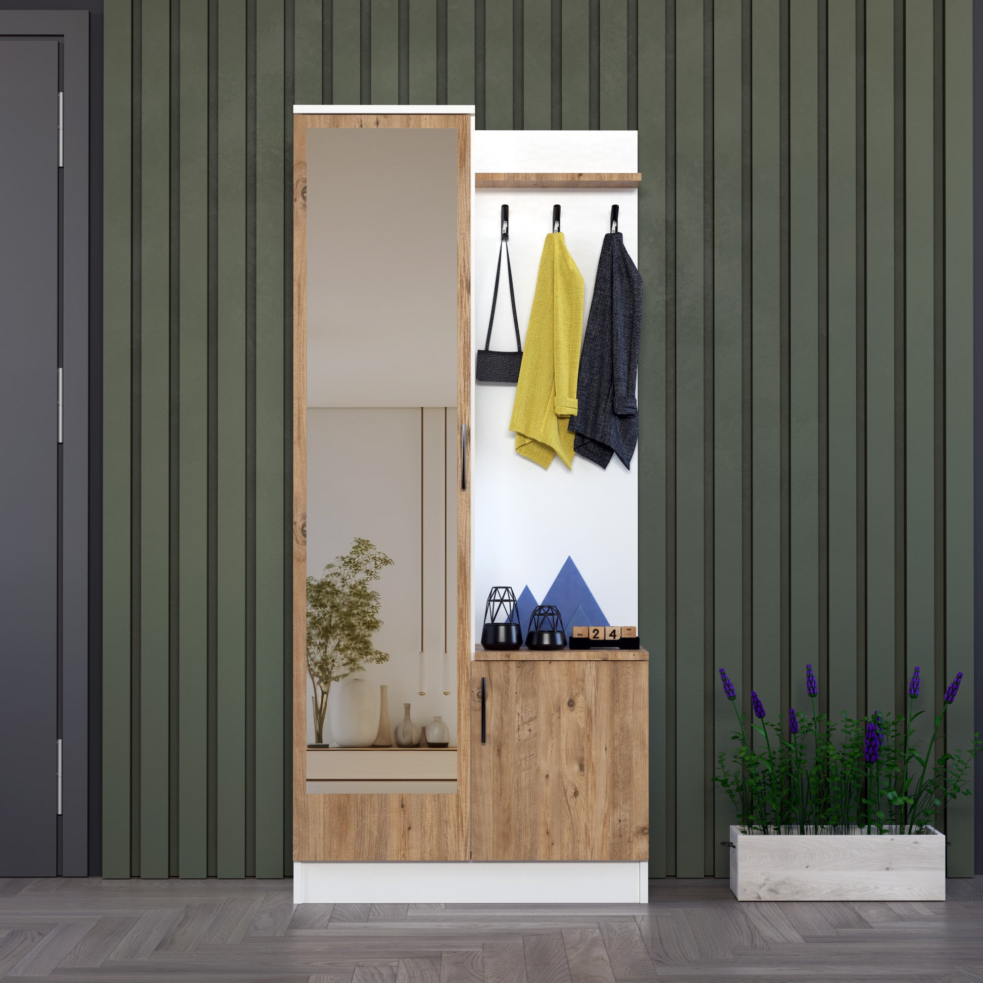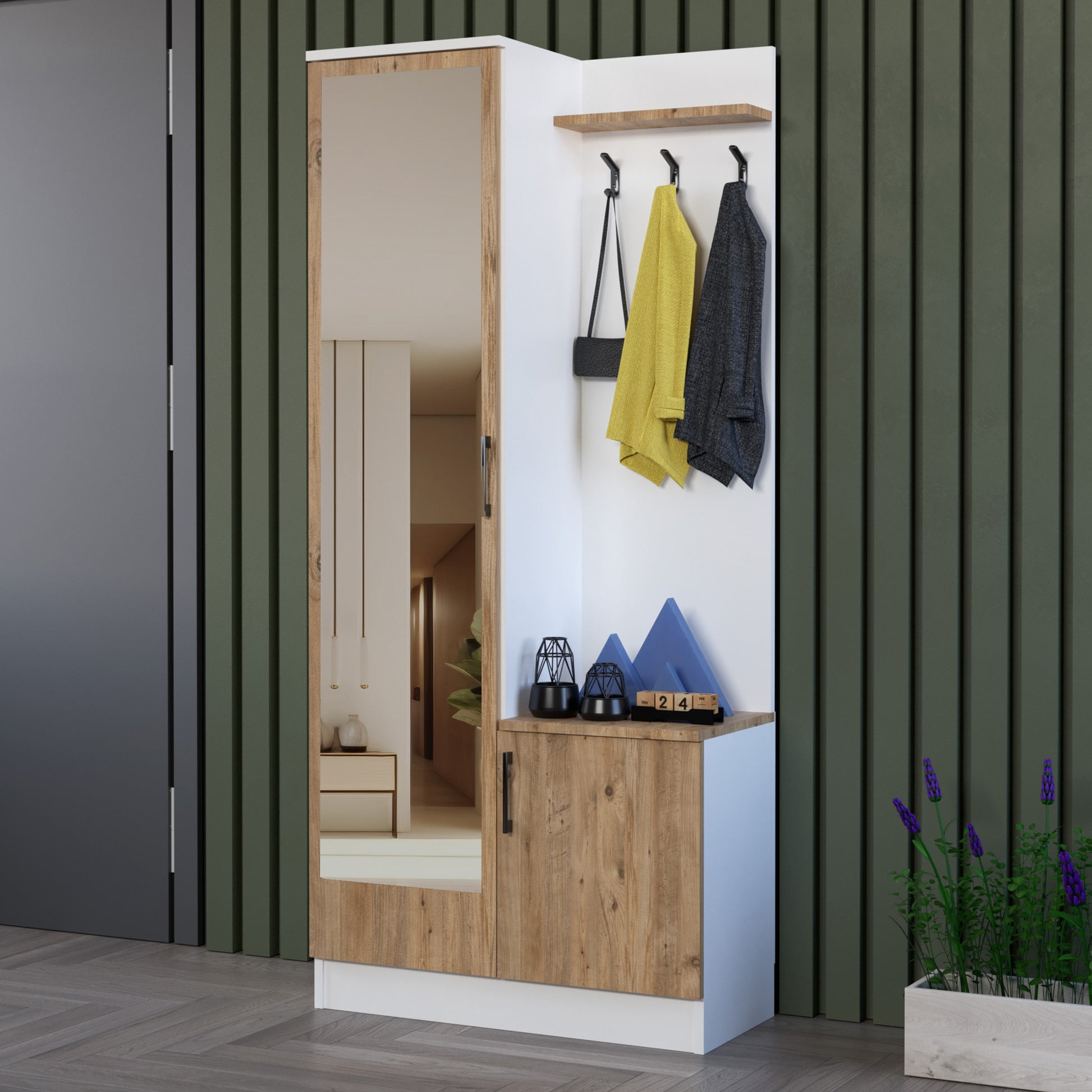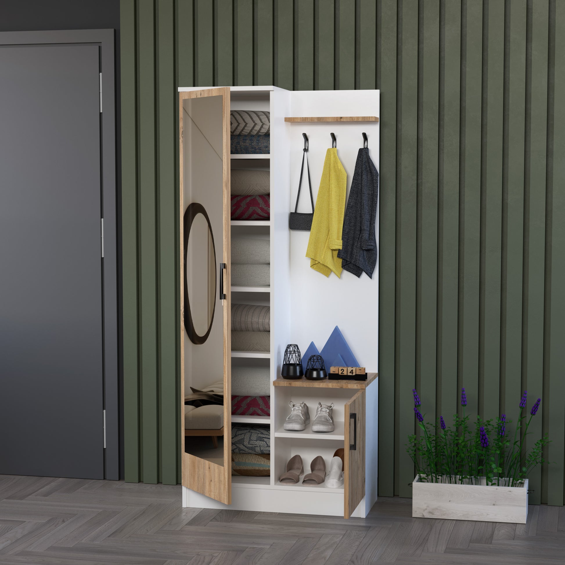 Perlomi 2 Kapaklı Aynalı Askılı Vestiyer Beyaz/Atlantik Çam PER VST 002