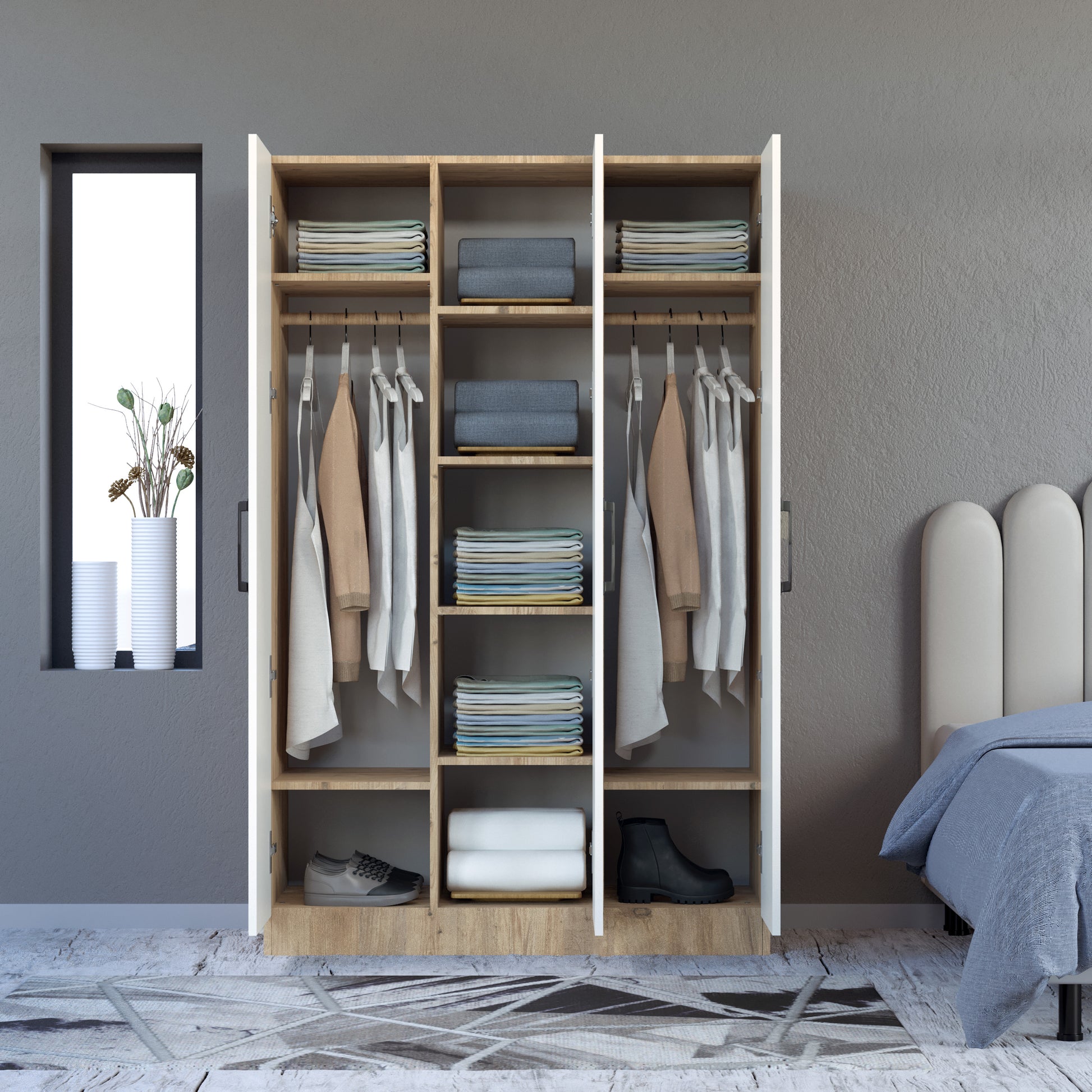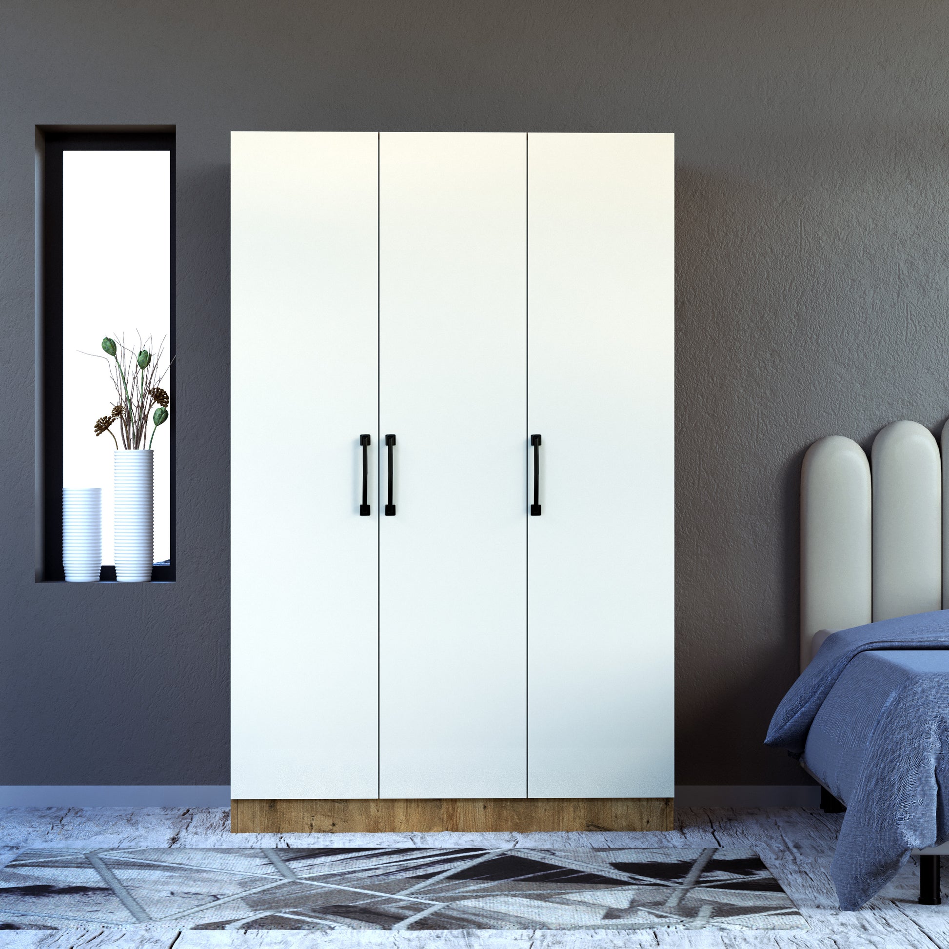 Perlomi 3 Kapaklı 11 Raflı Gardırop Elbise Dolabı 3 Kapaklı Gardırop Beyaz/Ceviz