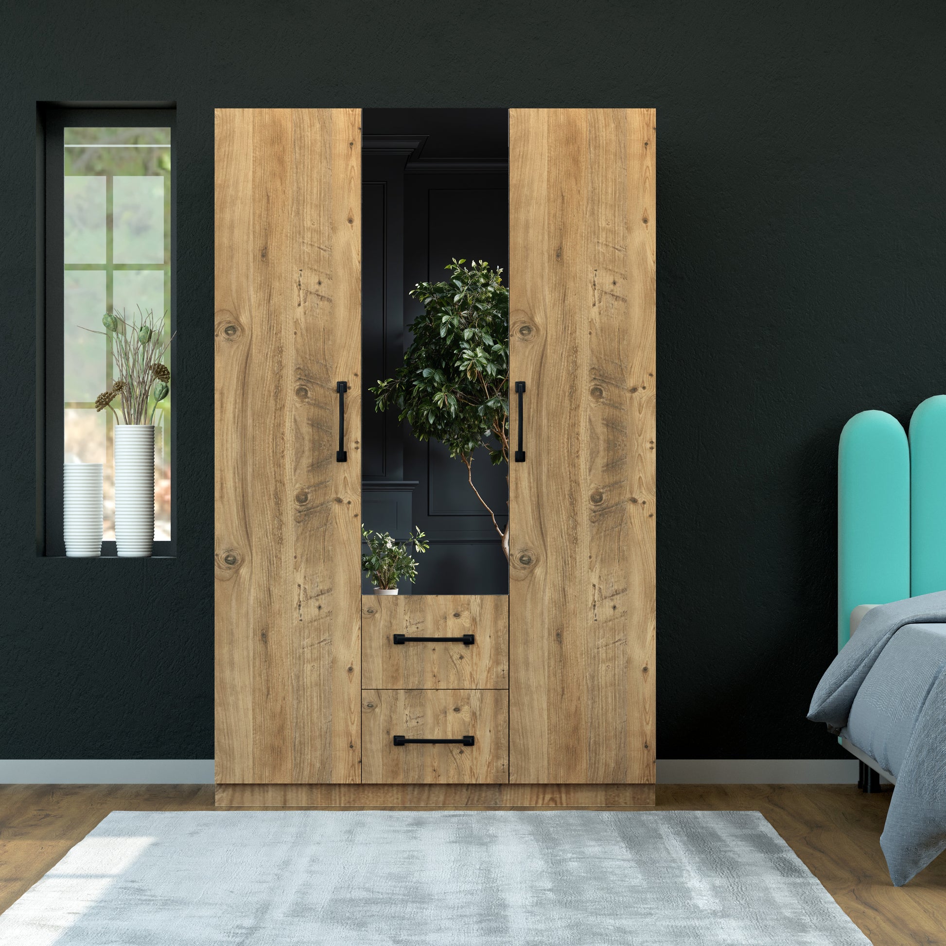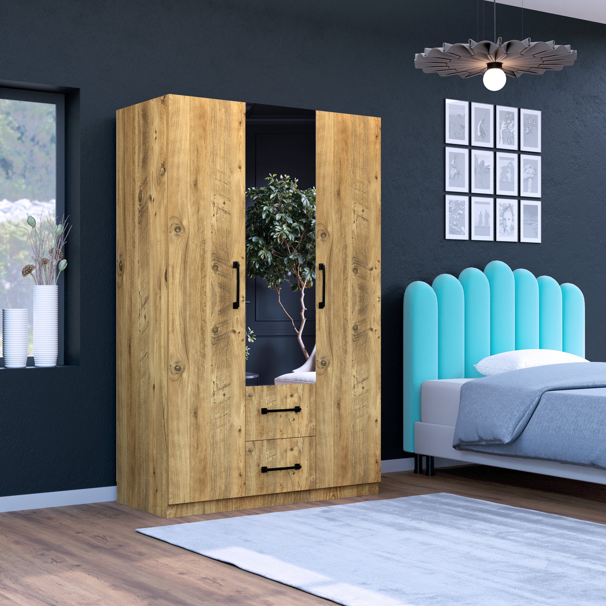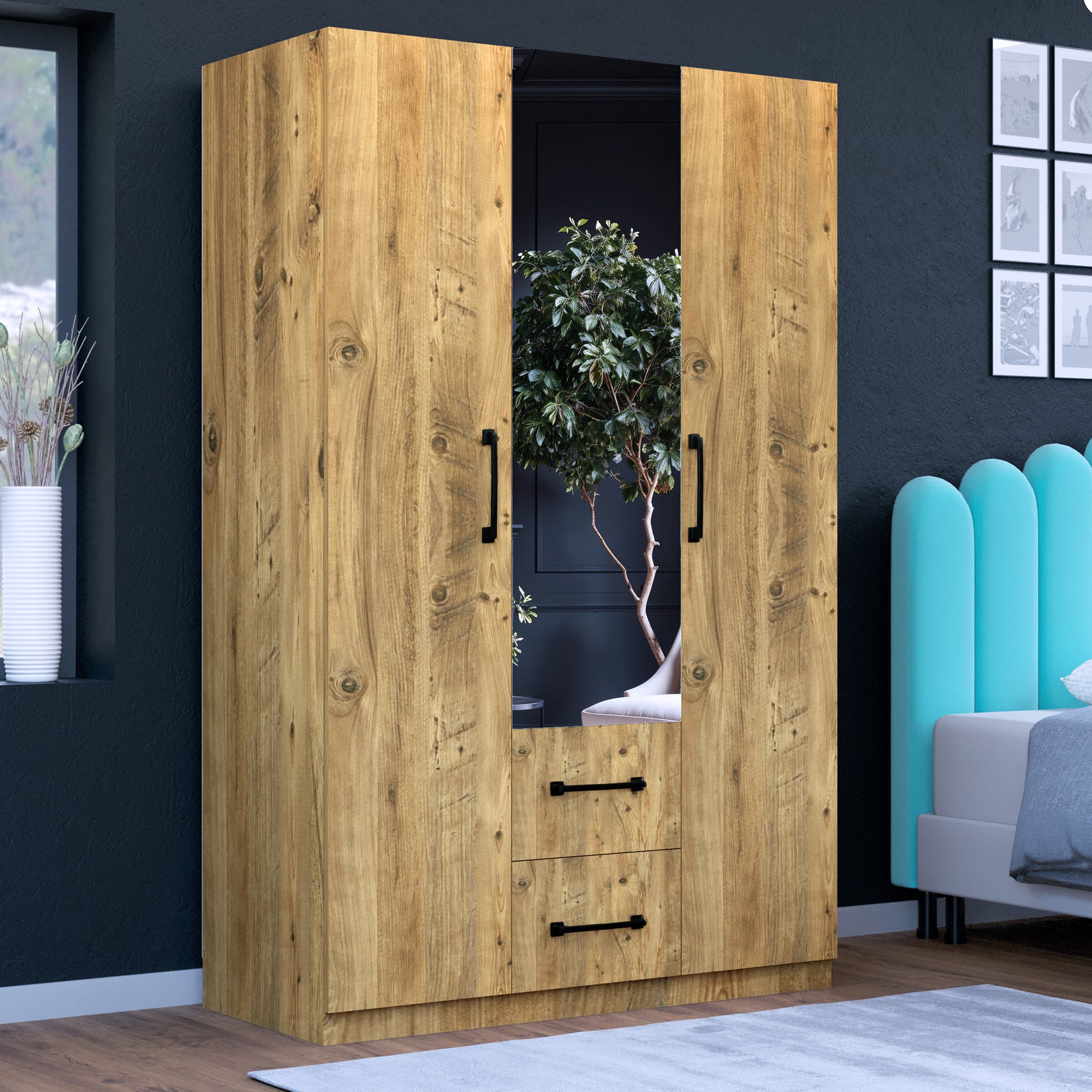 Perlomi 3 Kapaklı 3 Bölmeli 4 Bölmeli 2 Çekmeceli Aynalı Dolap Atlantik Çam PER DLP 005