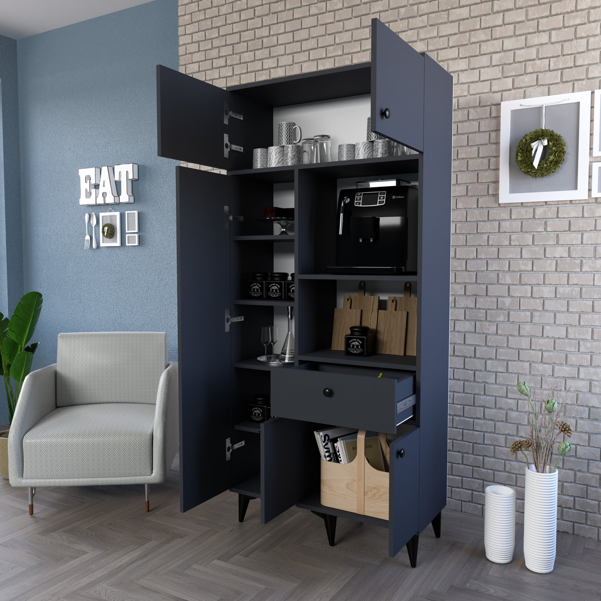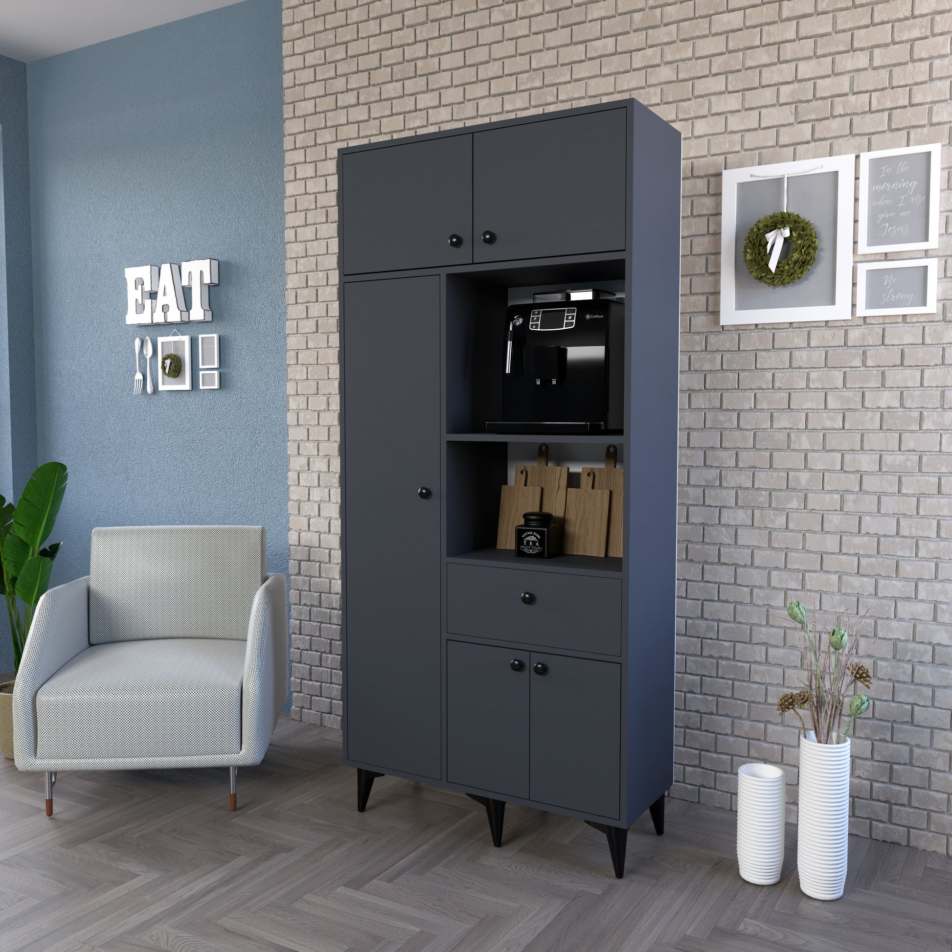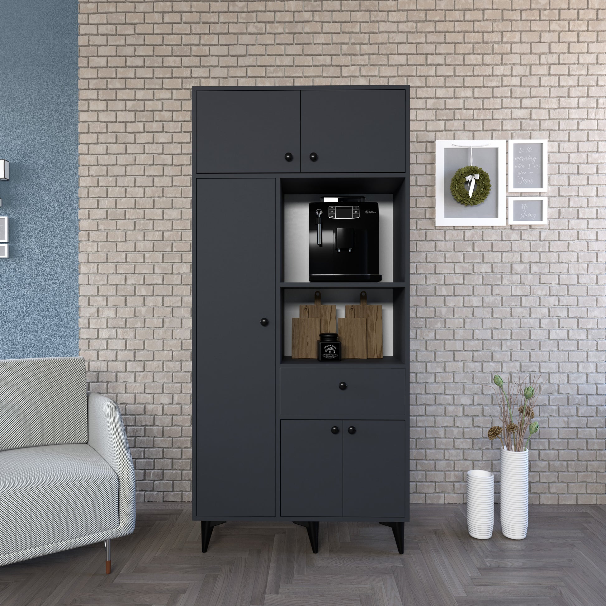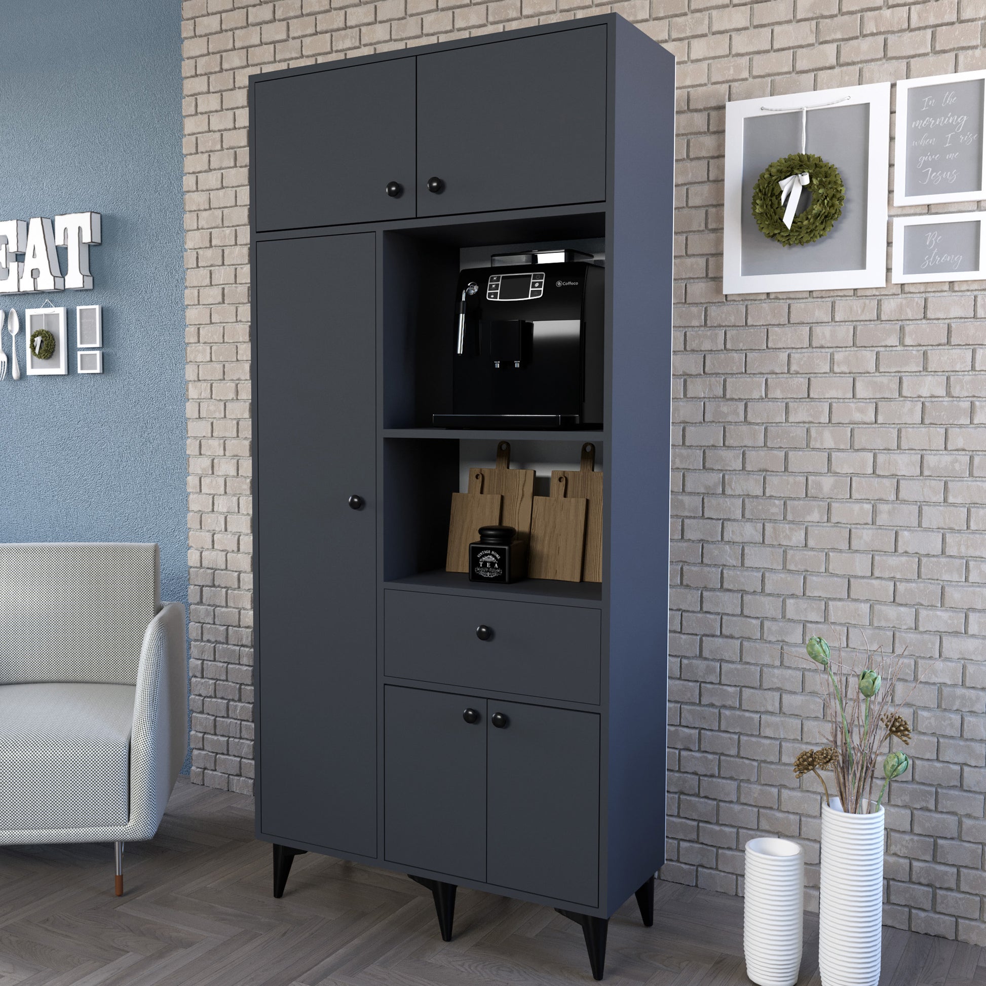 Perlomi 5 Kapaklı 9 Raflı Çok Amaçlı Mutfak Erzak Kiler Standı Dolap Antrasit PER KHV 005