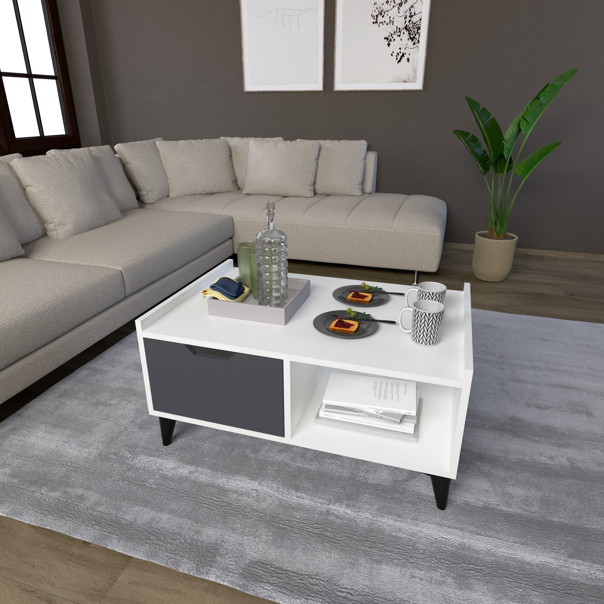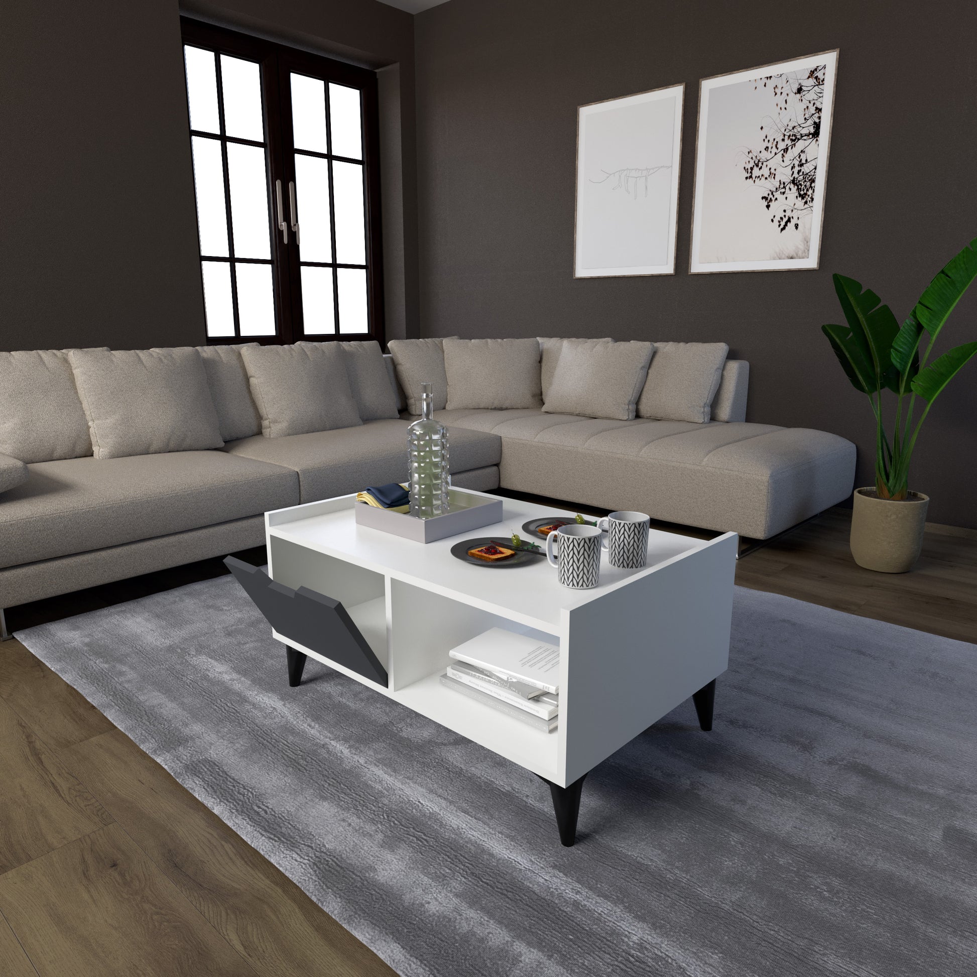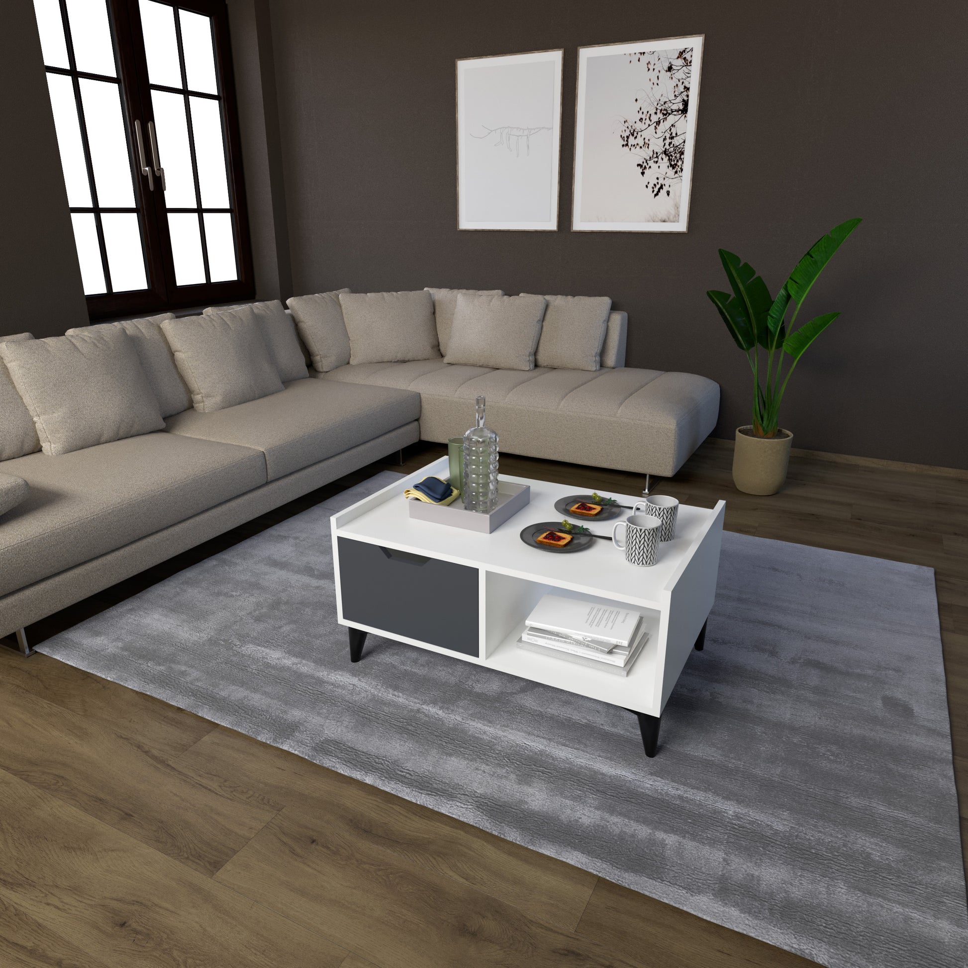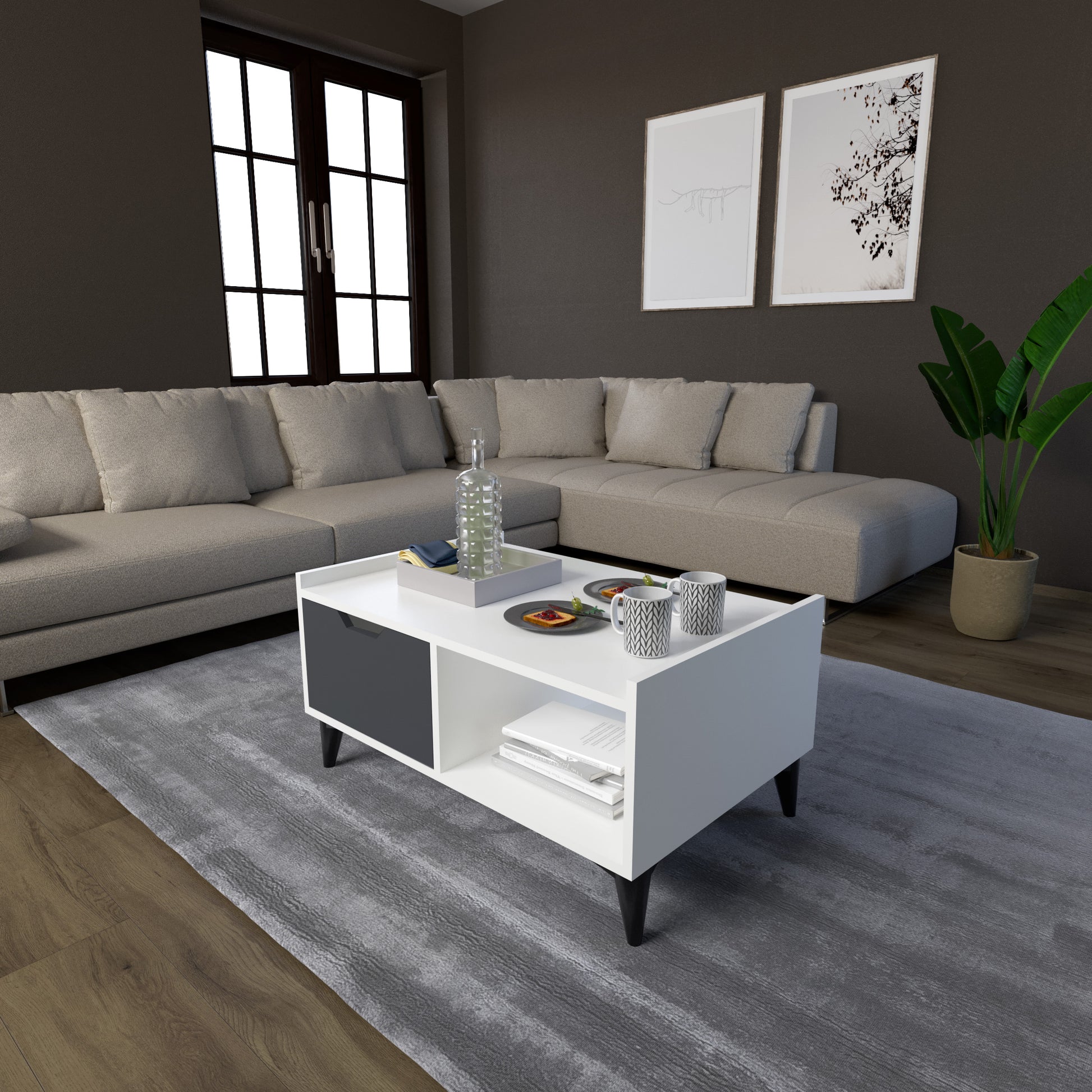Perlomi Orta Sehpa 2 Bölmeli 1 Kapaklı Sehpa Beyaz/Karbon Gri PER SHP 001