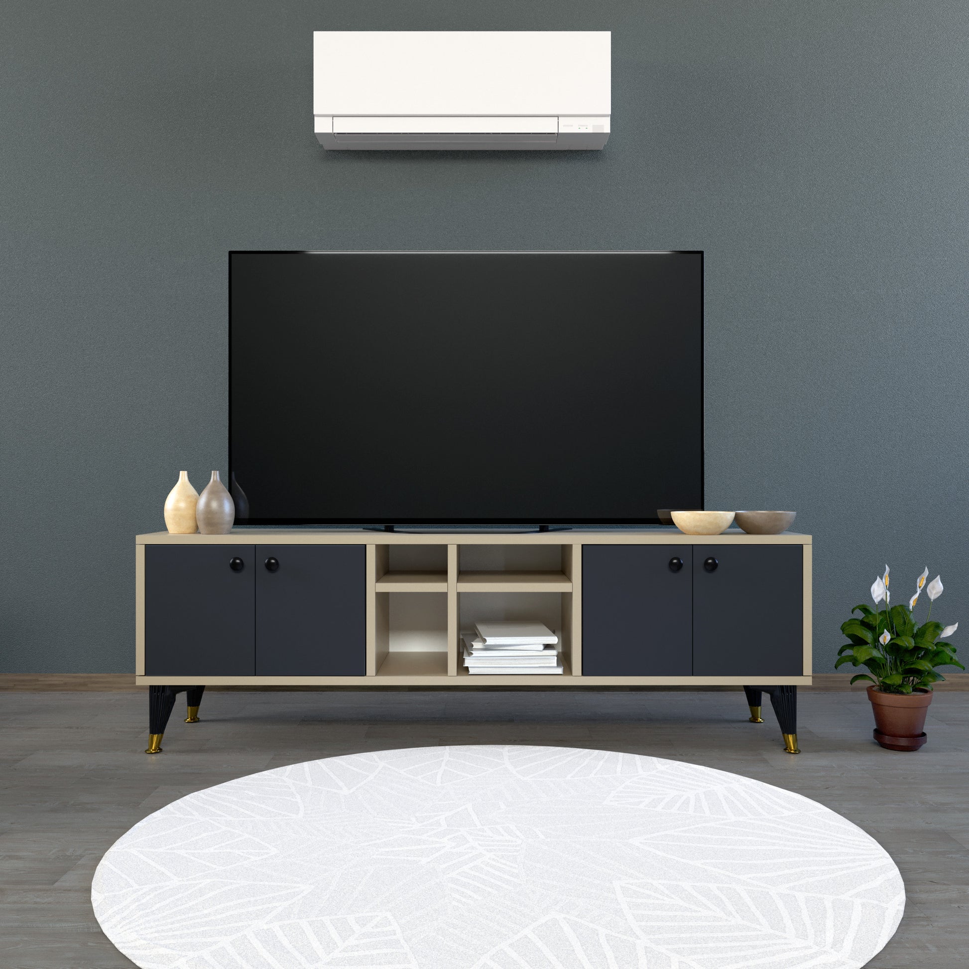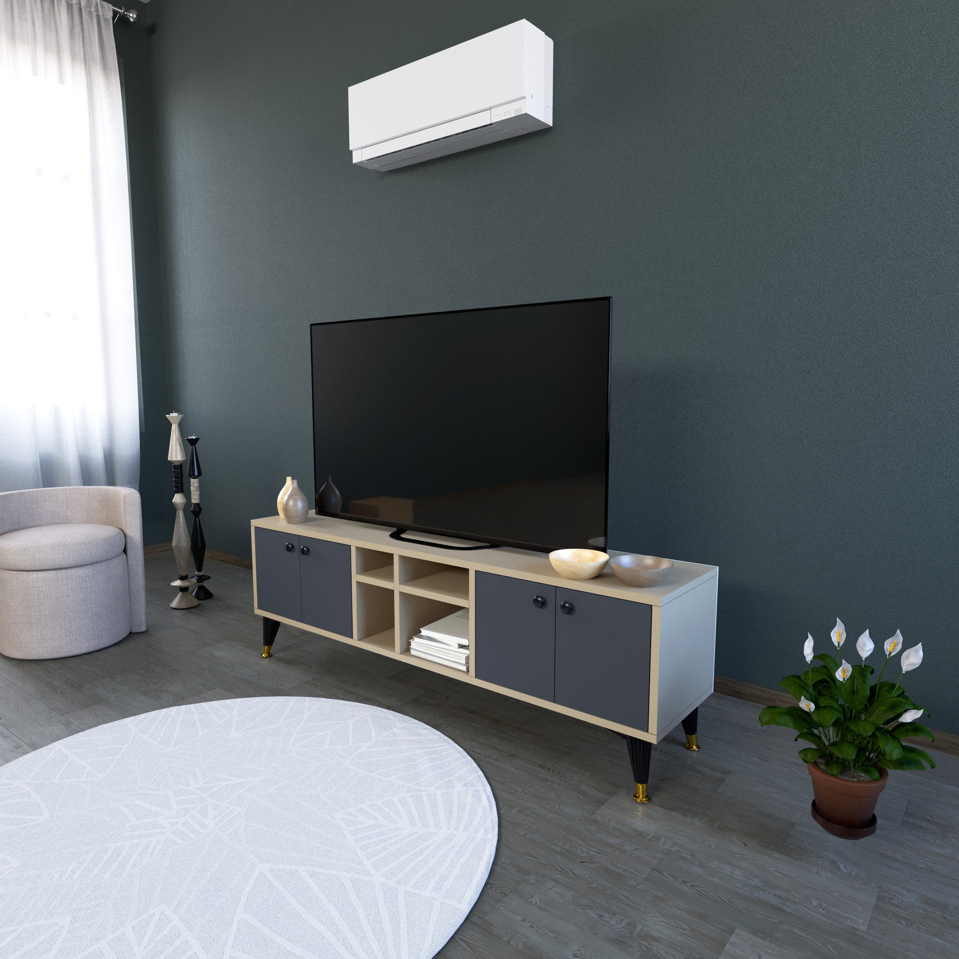 Perlomi Tv Sehpası Yandan Açmalı 2 Kapaklı 4 Raflı İçten 2 Bölmeli Karbon Gri/ Sahra PER TV 001